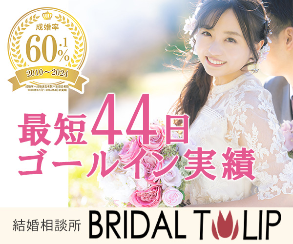 成婚率71.9%【最短で登録44日でのご成婚実績あり】婚活なら、東京の結婚相談所「BRIDALチューリップ」をご検討ください。顧客視点からの徹底したサポートを実施しています。資料請求も対応しているのでご連絡お待ちしております。